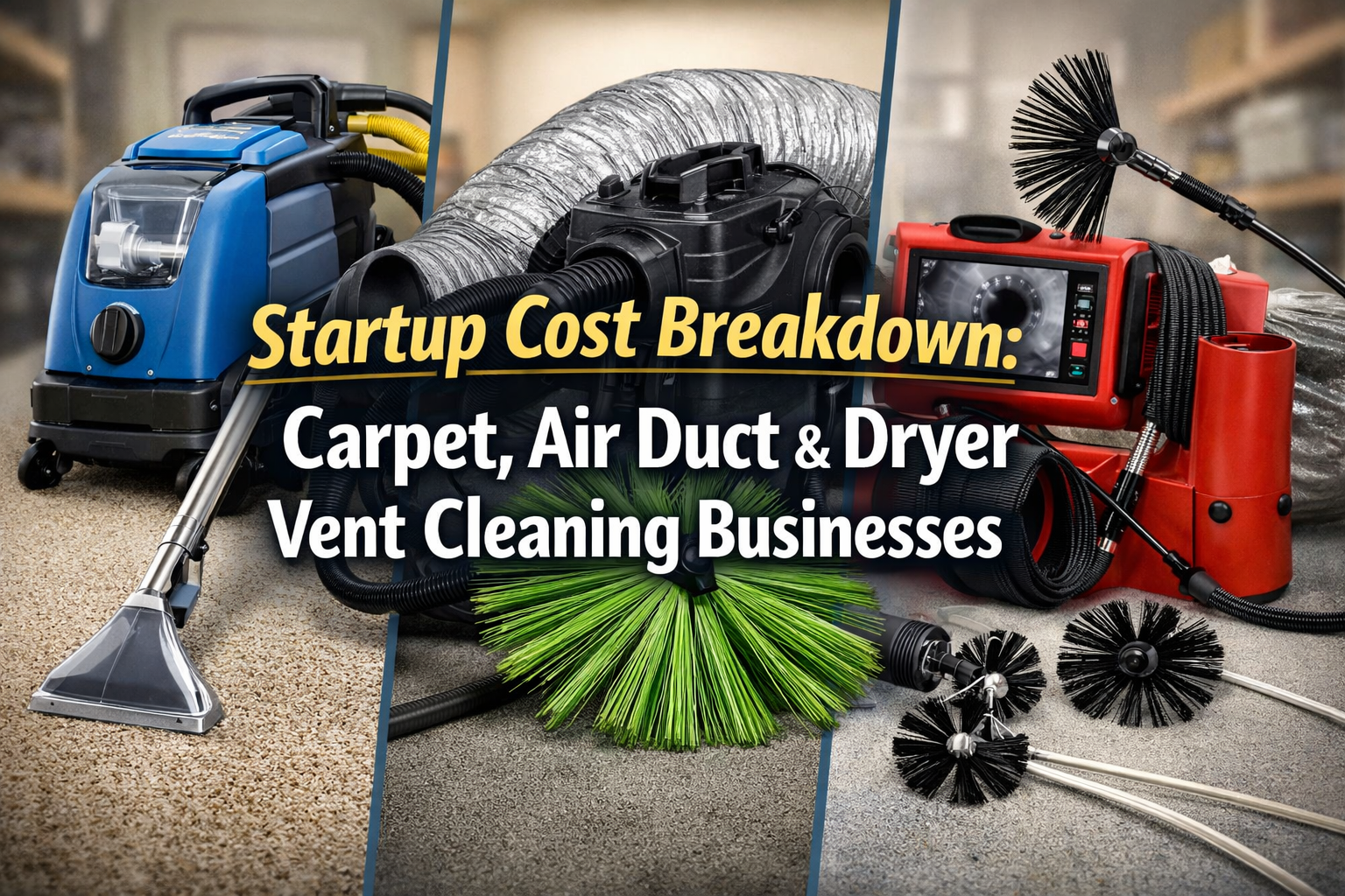 Compare startup costs for carpet, air duct, and dryer vent cleaning businesses. See equipment price ranges, ROI insights, and smart investment tips.