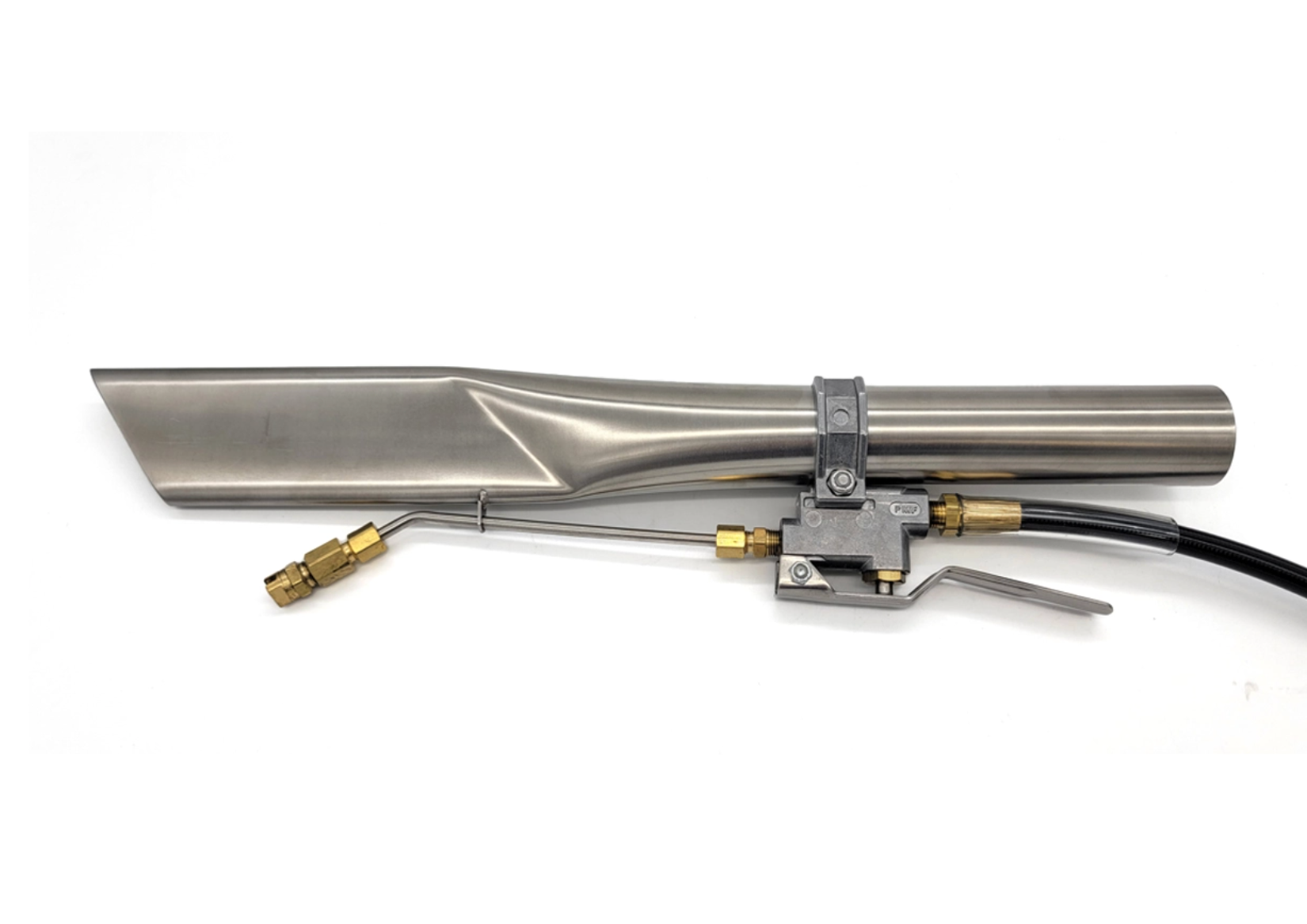 The Powr-Flite Crevice Tool with external spray is designed for deep cleaning in tight, hard-to-reach areas such as corners, seams, edges, and between cushions. Its narrow 1.5" profile allows for precise solution application and effective extraction, making it an essential detailing accessory for Powr-Flite carpet extractors.