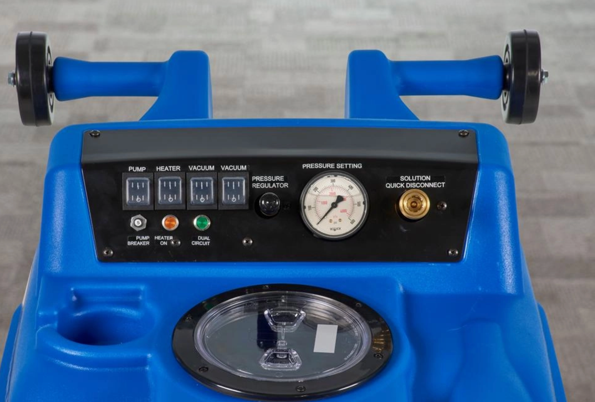 The Powr-Flite Pulsar Delta+ is a high-powered, dual-element heated carpet extractor designed for demanding commercial and restoration cleaning applications. With adjustable solution pressure up to 500 PSI, dual high-performance vacuum motors, and large-capacity tanks, this machine delivers exceptional deep-cleaning results while minimizing downtime on large jobs.