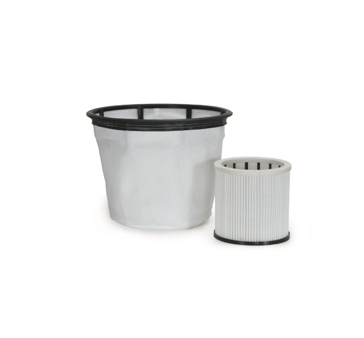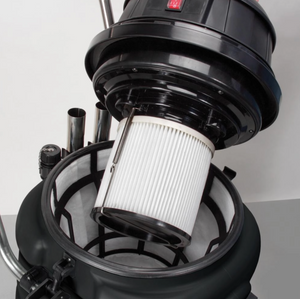 A washable cloth filter bag first keeps dust from circulating back into the air while a high performance pleated paper cartridge filter provides general application filtration.